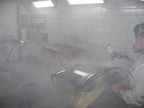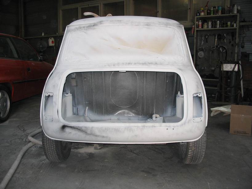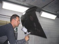 spuitplamuur, Gaat ie de kabine in om vervolgens in de grondverf gezet te worden. |